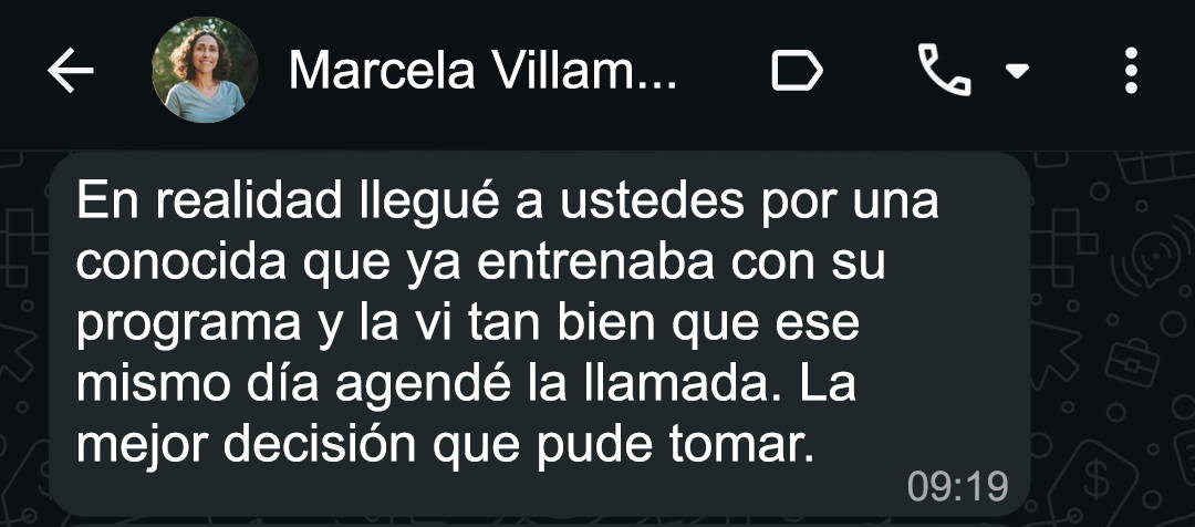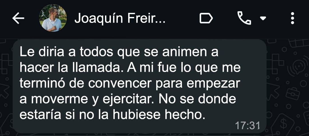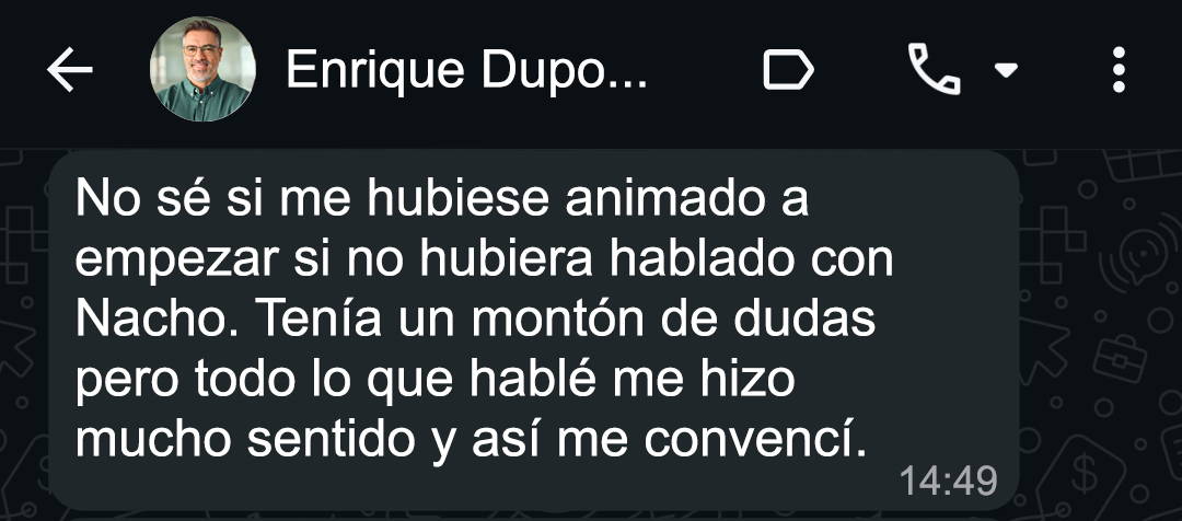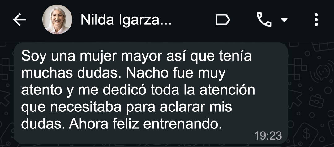 Sí, nuestro tiempo es super valioso y no lo regalamos :) Si sos de Argentina, agendar la videollamada con Nacho tiene un valor de AR$50.000 pesos. Si sos de España, Estados Unidos, o de cualquier país de LATAM, el valor es de US$50 dólares. Pero mirá esto: si después de hablar con Nacho tomás la decisión de empezar a entrenar con nosotros, lo que pagaste para agendar la videollamada te lo vamos a devolver, así que en ese caso sí que termina siendo gratis.