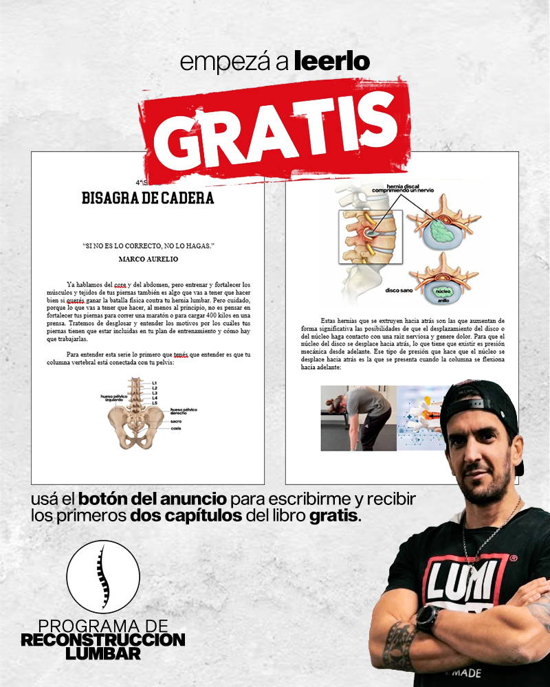 Si tenés una hernia lumbar o cualquier tipo de lesión de columna de tipo discal esta es una inversión de tiempo y de dinero que no podés dejar de hacer. A lo que vas a acceder es a casi 300 páginas que te van a enseñar en idioma simple y sin complicaciones todo lo que tenés que saber para maximizar tus chances de éxito en la guerra contra tu lesión y el dolor crónico.